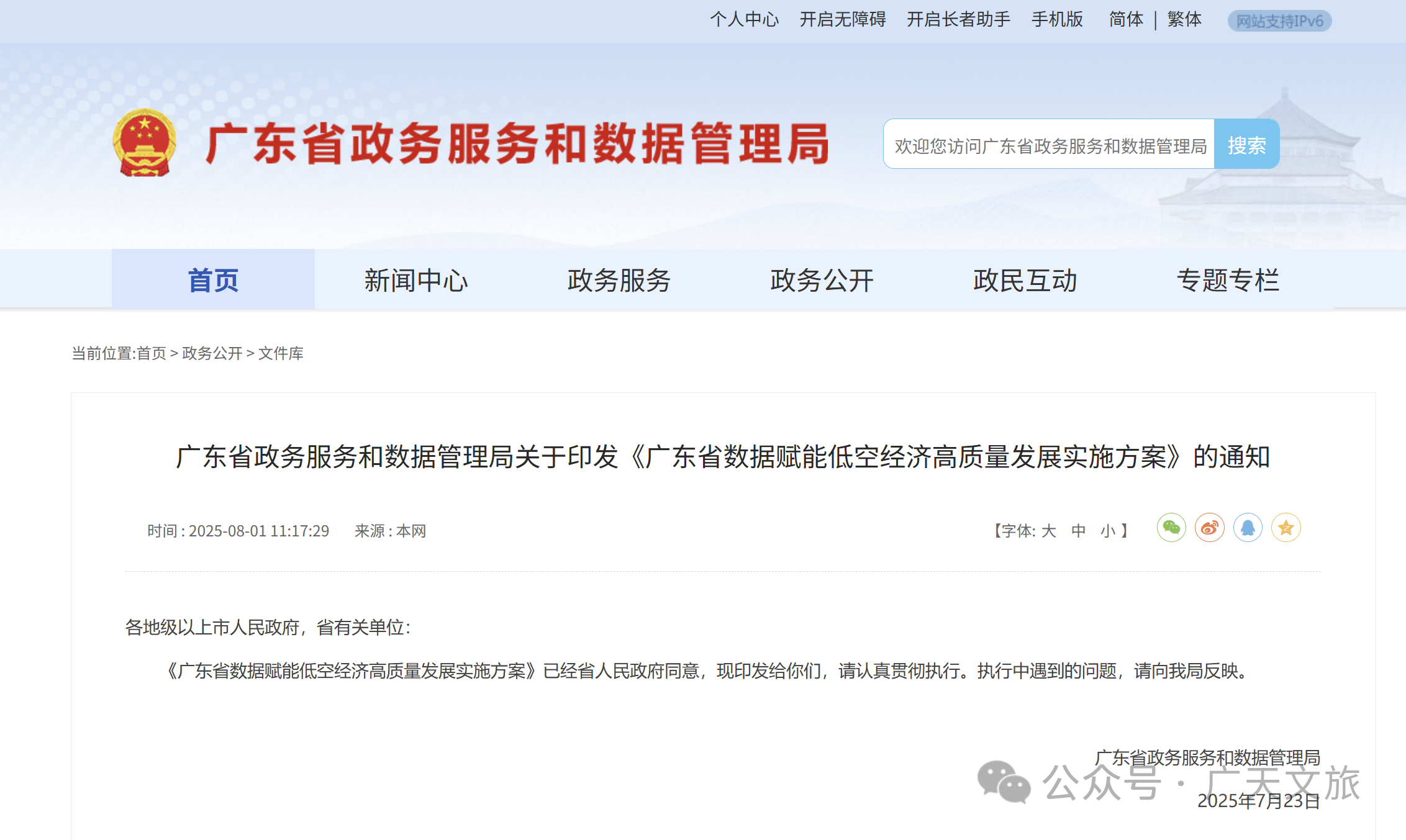 就在8月1日,广东省政务服务数据管理局正式印发《广东省数据赋能低空经济高质量发展实施方案》(以下简称《方案》),为这片充满想象力的“新空域”绘制了清晰的数据驱动蓝图。目标明确:到2027年底,建成全国领先的低空数据产业生态!