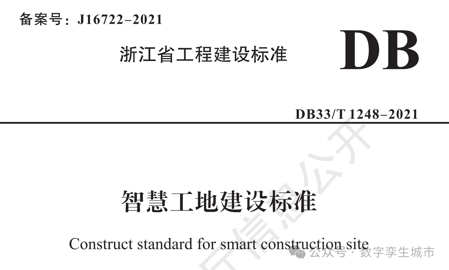 2021 年 11 月 23 日,浙江省住房和城乡建设厅正式发布《智慧工地建设标准》(DB33/T 1248-2021),并于 2022 年 3 月 1 日起实施。该标准由杭州市建设工程质量安全监督总站、浙江工汇网络科技有限公司、中铁 (上海) 投资集团有限公司联合主编,30 余家省内龙头建筑企业参与编制,系统构建了覆盖工地人员、材料物资、机械设备、场地环境、过程控制等全要素的数字化管理体系。标准共分 9 章 4 个附录,首次从省级层面明确了智慧工地的技术框架与实施路径,标志着浙江省工程建设领域从传统粗放管理向系统治理、智能协同的转型进入规范化阶段。