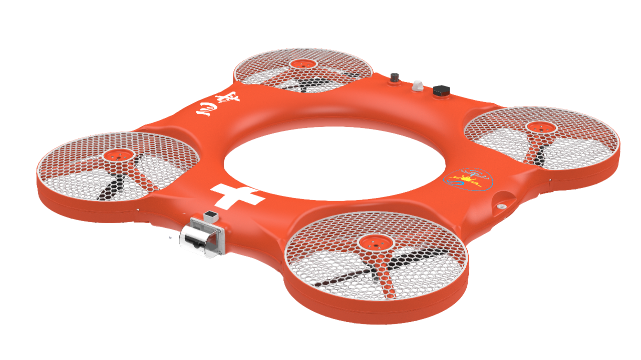 飞行救生圈为我公司首创专利产品,主要应用在江河湖海、水上公安、水上工程、消防应急、水利、海事等领域。面向水上应急救援,能够快速飞行至落水者身边并提供浮力,保障落水者的安全。具备结构紧凑,外观轻巧,飞行稳定,性能可靠的特征。该产品能够降低水域救援风险,提高水上救援成功率,丰富我国水域救援装备,完善水上应急管理体系,从而更好地保护人民的生命财产安全。