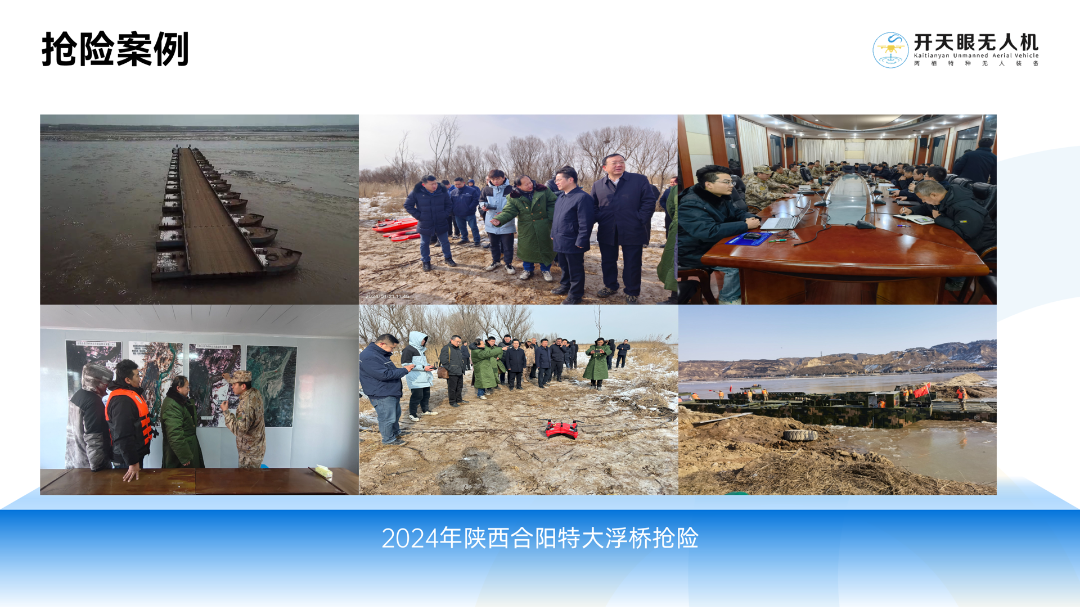2024年陕西合阳特大浮桥抢险行动中,飞行救生圈、飞行救援艇快速到达现场,精准执行救援任务,为保障人员安全发挥了重要作用。