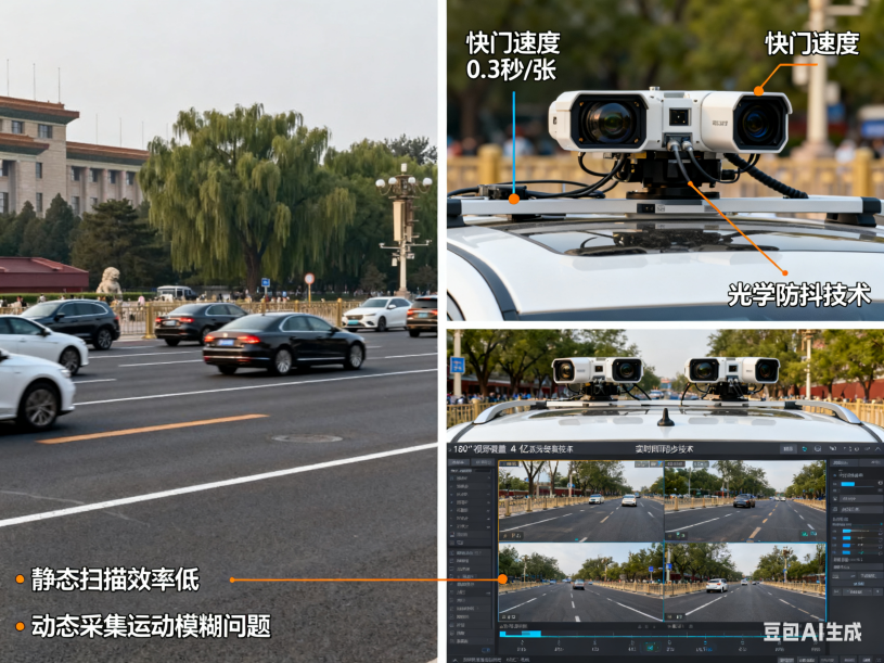 在车流密集的长安街,静态扫描效率极低,而动态采集易因运动模糊丢失细节。这套定制系统的关键突破在两方面:
