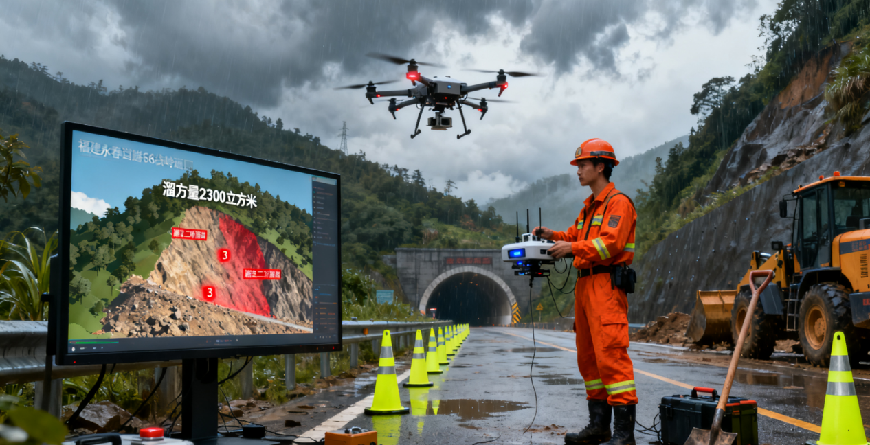 而在更早的7月28日,台风引发的暴雨袭击福建永春,国道356线古岭隧道口出现大量泥石溜方。抢险队伍抵达后,率先启用无人机搭载的激光雷达扫描仪,15分钟内完成隧道口边坡三维建模,精准测算出溜方量达2300立方米,并识别出3处潜在二次滑坡区域,避免了抢险人员盲目作业的风险。