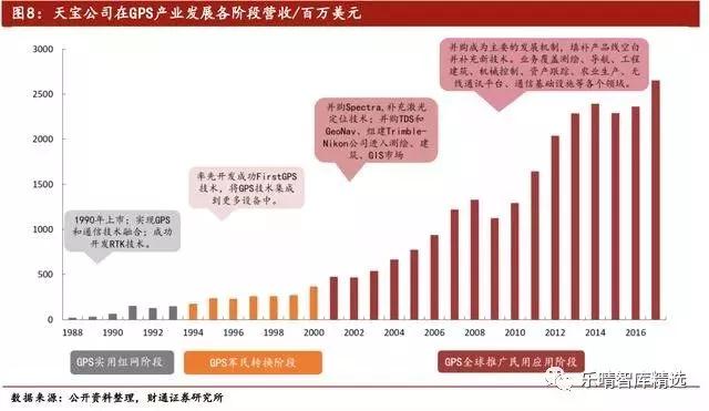 纵观GPS发展路径:(1)军用转民用;(2)从发达国家向发展中国家渗透,是业内企业成长的必经之路。以美国著名GPS设备厂商天宝(Trimble)为例,其发展路径和业绩成长符合这样的路径。