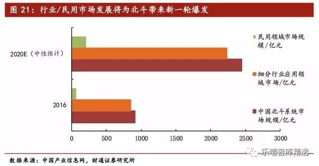 但是更大的市场在于民用市场:北斗导航系统在定位精度不断提升以及芯片价格逐渐稳定的背景下,随着大数据、云计算、物联网、车联网和低碳经济等新技术和新经济模式的出现,在军民融合和大数据等相关政策刺激下,有望迎来一次跨越式的爆发。