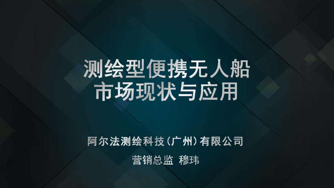 今天分享的是阿尔法测绘科技(广州)有限公司营销总监穆伟的专题报告。围绕“阿尔法型便携无人船的市场现状与应用分享”展开,主要介绍了当前水下测绘工具与现状和无人船的发展,并为我们带来关于无人船测绘应用场景的分享以及分析目前测绘型无人船的市场机会等。