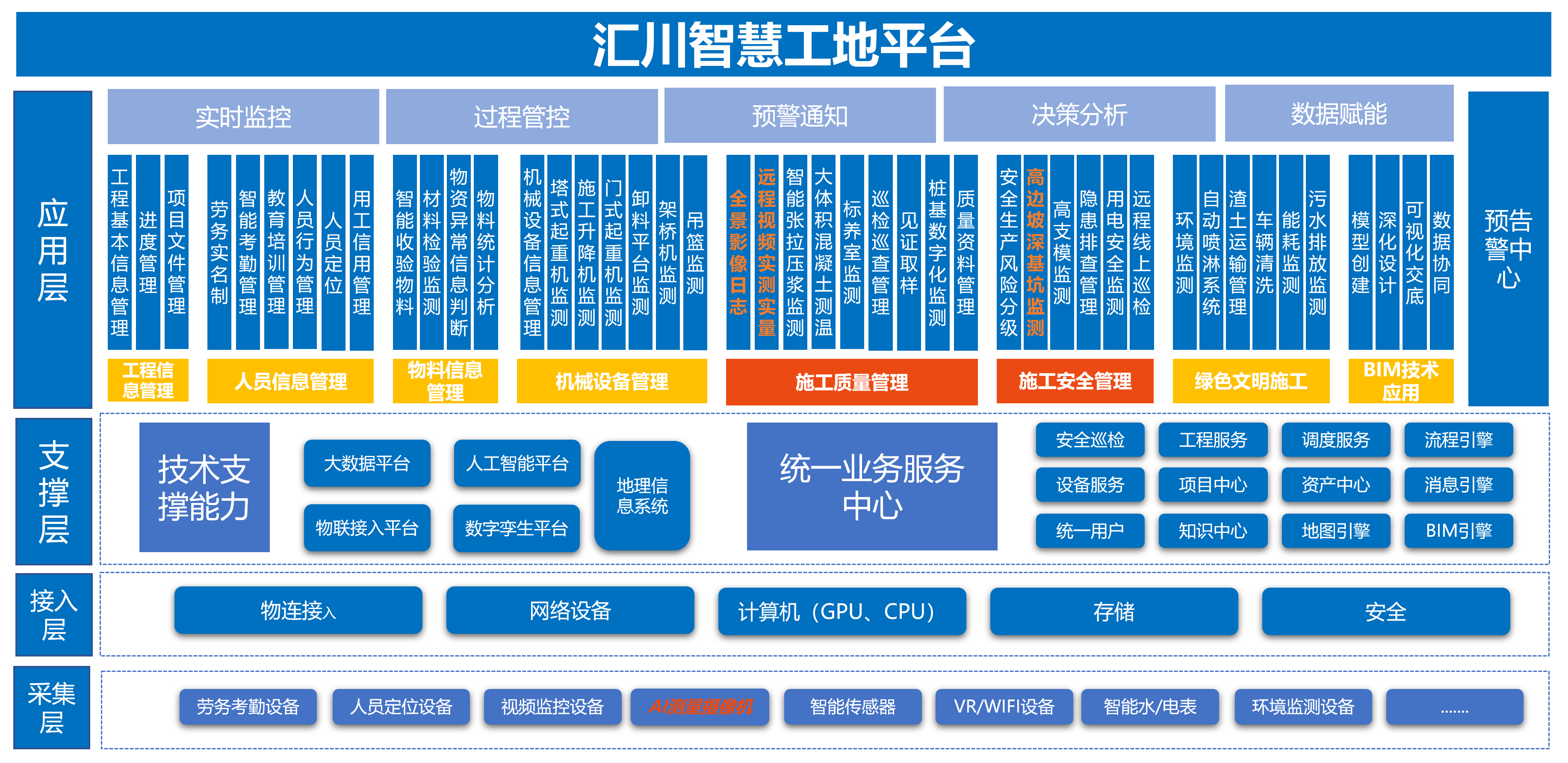 建设“智慧工地”平台,提高企业、项目管控的准确性、及时性、真实性和完整性,跟踪现场各类作业数据、动态掌握施工现场安全及工程质量控制情况,以“人机结合、智能辅助、系统调度、智慧管理”为目标实现施工现场各责任主体综合管理水平提升,探索建立与智慧化施工相适应的工程施工监管模式与机制。