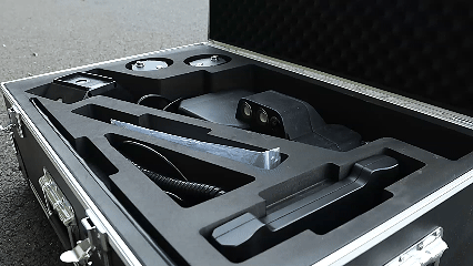 考虑到现场作业的复杂性,「测立得」M300设计的十分轻巧便捷,整机重量仅 4.1kg,单手就能拎着走;标配9米伸缩杆,折叠后长度适中,放进工程车后备厢不占空间。杆体经过碳纤维强化处理,硬度够、韧性好,深井测量时不用搭支架,一个人就能稳稳操作。