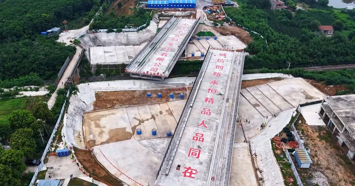 近日,中铁十五局承建的荆东大道上跨长荆铁路立交桥梁,经110分钟精密操控,顺利完成79°逆时针同步转体,实现毫米级精准对接,圆满完成国内首例双幅无墩柱T构桥梁同步转体,为全线贯通奠定了坚实基础。