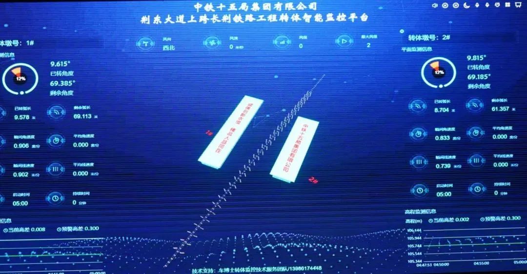转体过程中,技术团队采用先进的智能监测与控制系统,通过徕卡高精度全站仪等设备对转体过程中桥梁状态、应力变化和轨迹偏移量等关键参数进行采集和分析。