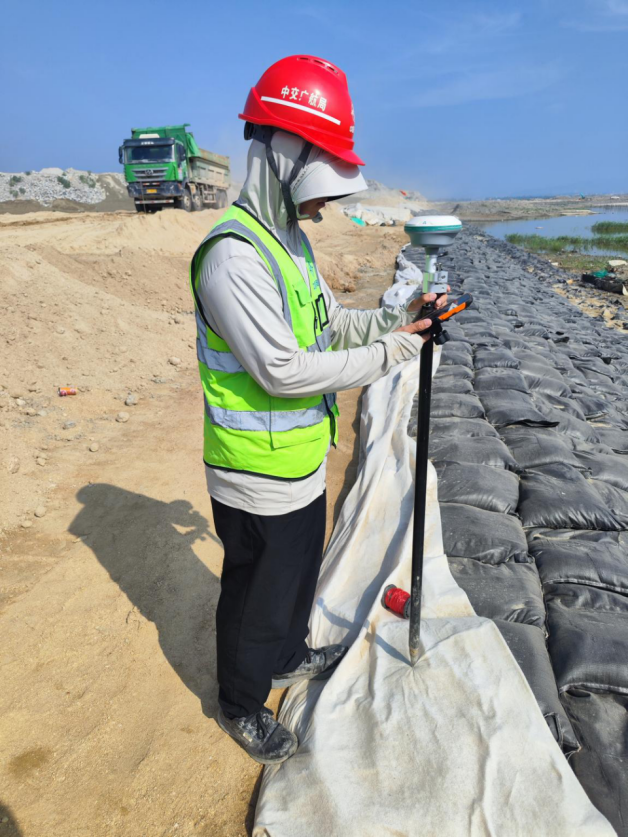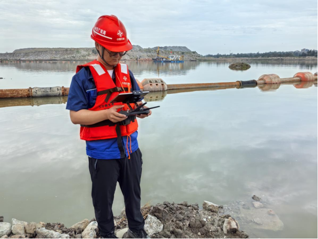 科技赋能,让测量工作不再局限于“量尺寸、绘图纸”的单一维度。在这片“水-陆-空”全维度测量体系的护航下,项目施工智慧迭代升级。土方回填精度控制在毫米级,避免材料浪费;水下地形测绘数据指导吹填作业,生态护岸建设与滞洪功能完美融合;无人机巡检系统更可实时监测施工安全,让高危作业场景中的风险降至最低。