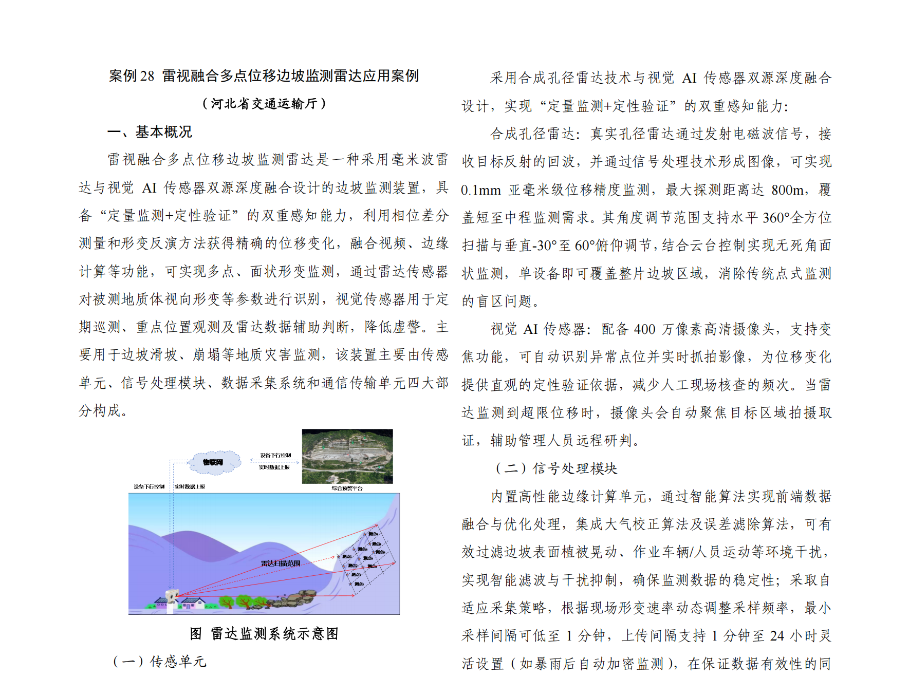 为进一步提升突发情况早发现、早处置能力,动态掌握公路基础设施运行状况,全面提高公路防灾抗灾能力和安全保障水平,河北省交通运输厅在役公路试点边坡监测项目引入雷视融合多点位移边坡监测仪,对边坡滑坡、崩塌等地质灾害实现有效防范和监测。