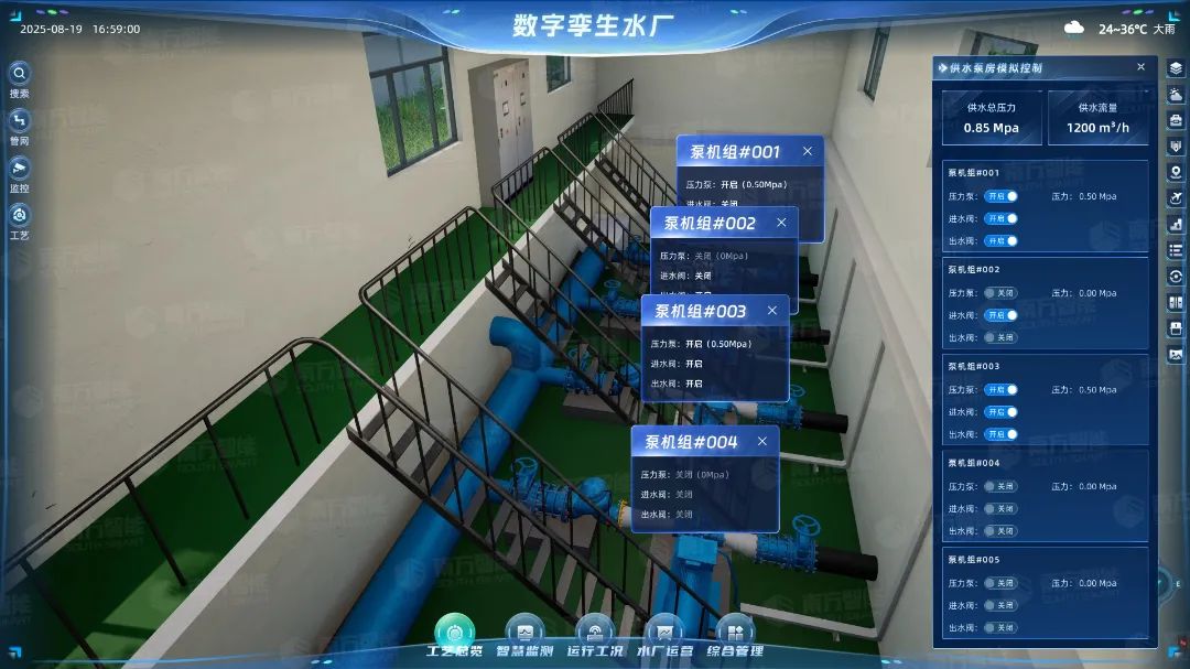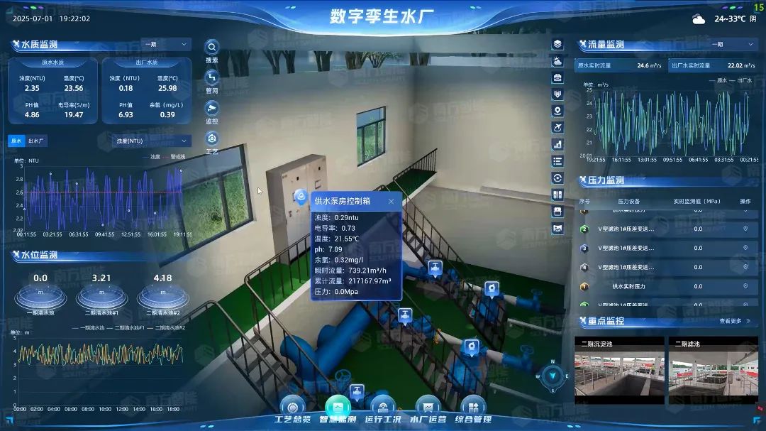 实现真实水厂数字化映射,通过“实转虚、虚控实”,推动水厂精细化、数字化、智能化管理升级。