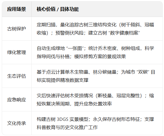 管理人员可以轻松掌握每棵树的精确坐标、形态以及与周边环境的复杂空间关系(如冠层重叠度、与建筑的安全距离),为精细化管理和保护决策提供前所未有的洞察力。