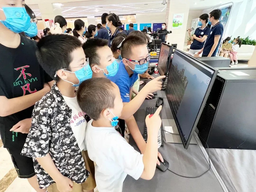 小朋友在屏幕前观看立体测图系统演示