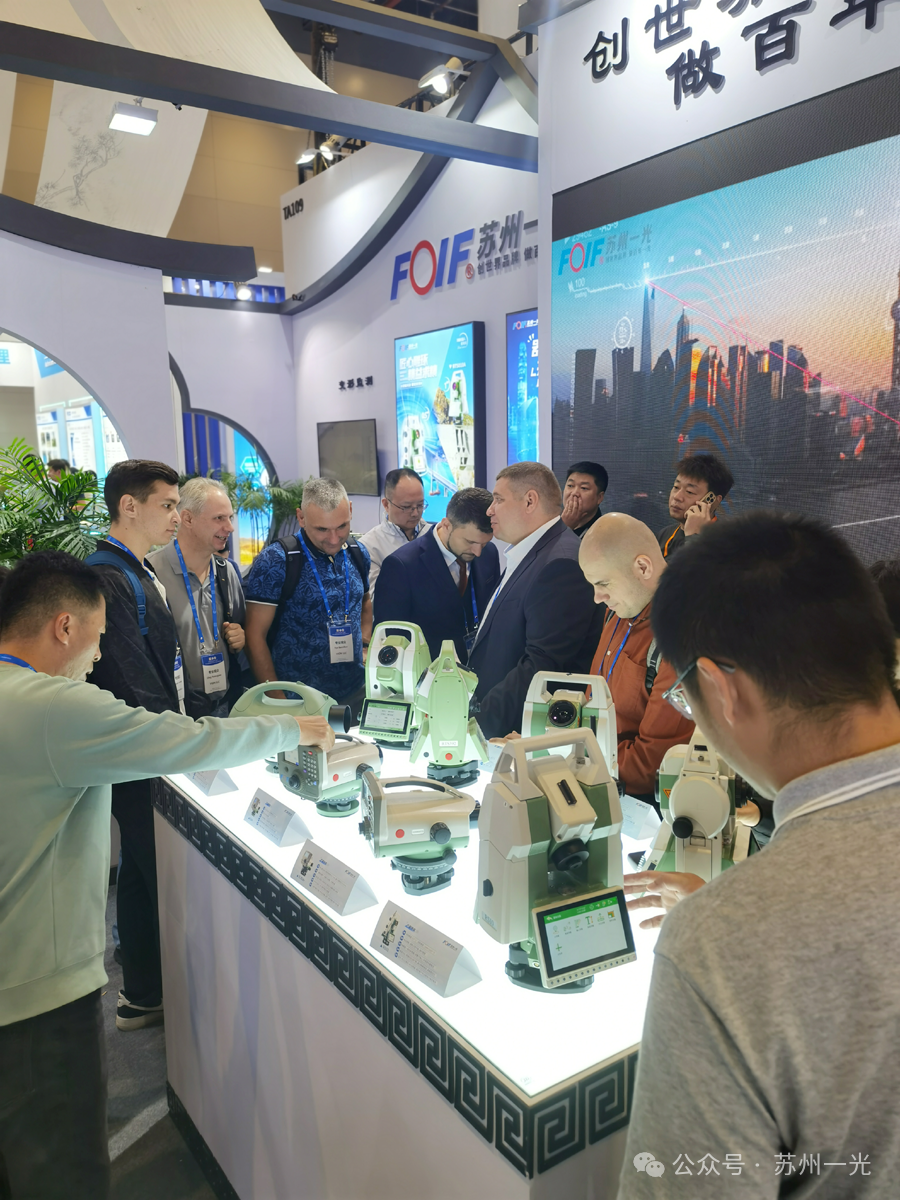 苏州一光仪器有限公司展位沿袭以园林风格为主题背景,展出了用于变形监测的RS10直驱机器人全站仪、EL03PRO影像触摸彩屏电子水准仪、EL302A+电动整平电子水准仪、RTS010N安卓全站仪、RTS392N安卓全站仪、A70AR-BD单北斗视界RTK、A66AR影像惯导RTK等测绘装备。