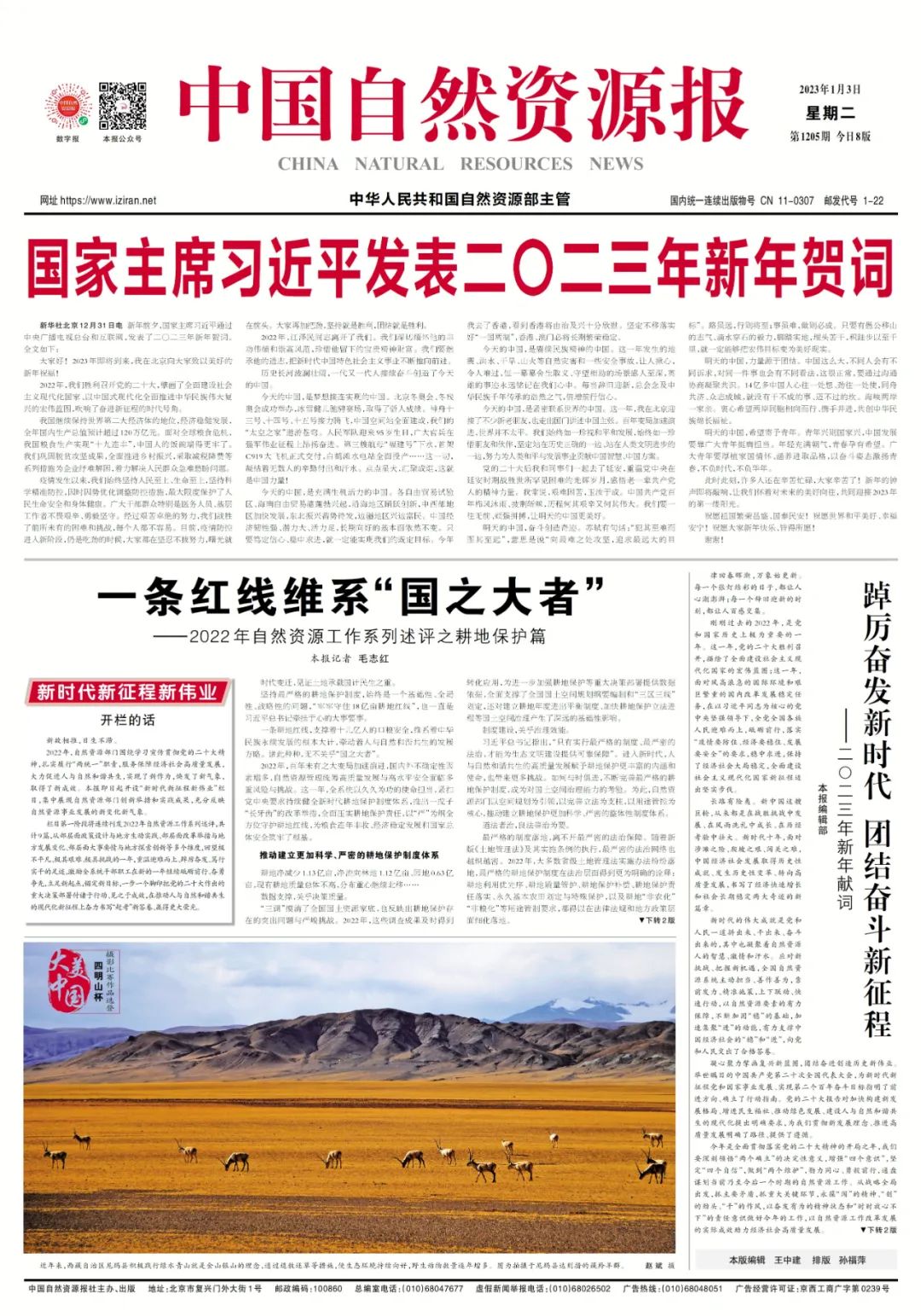 2022年,自然资源部门围绕学习宣传贯彻党的二十大精神,扎实履行“两统一”职责,服务保障经济社会高质量发展,大力促进人与自然和谐共生,实现了新作为,焕发了新气象,取得了新成效。《中国自然资源报》即日起开设“新时代新征程新伟业”栏目,集中展现自然资源部门创新举措和实践成果,充分反映自然资源事业发展的新变化新气象。