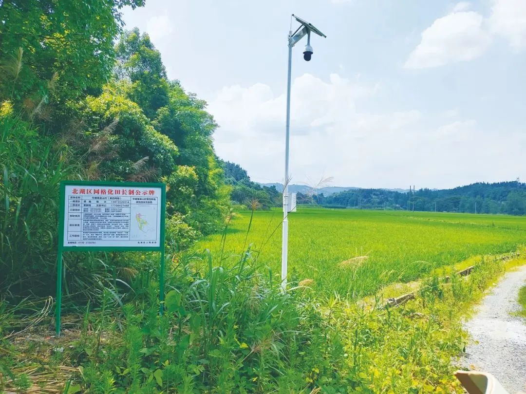 在湖南省郴州市北湖区华塘镇吴山村,“田长制公示牌”与“田眼”共同守护着农田。记者 肖颖 摄