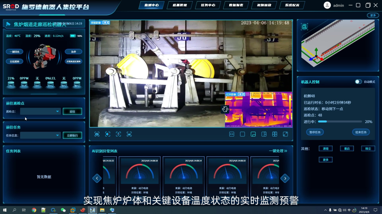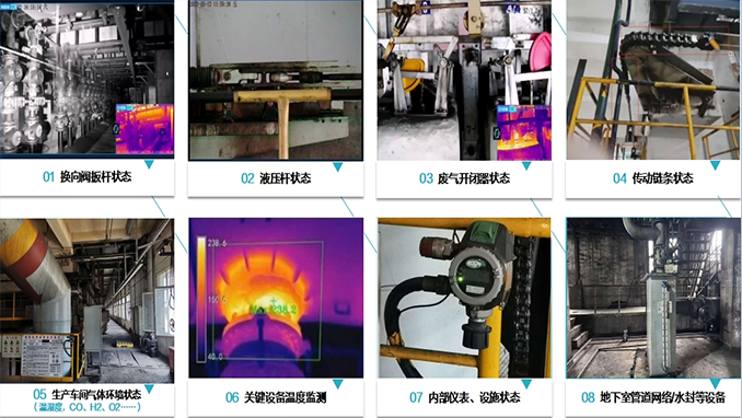 焦化厂焦炉烟道走廊及地下室巡检环境恶劣,存在高温、高粉尘及有害气体泄漏等安全隐患。传统人工巡检方式效率低、风险高,且易出现误检、漏检。