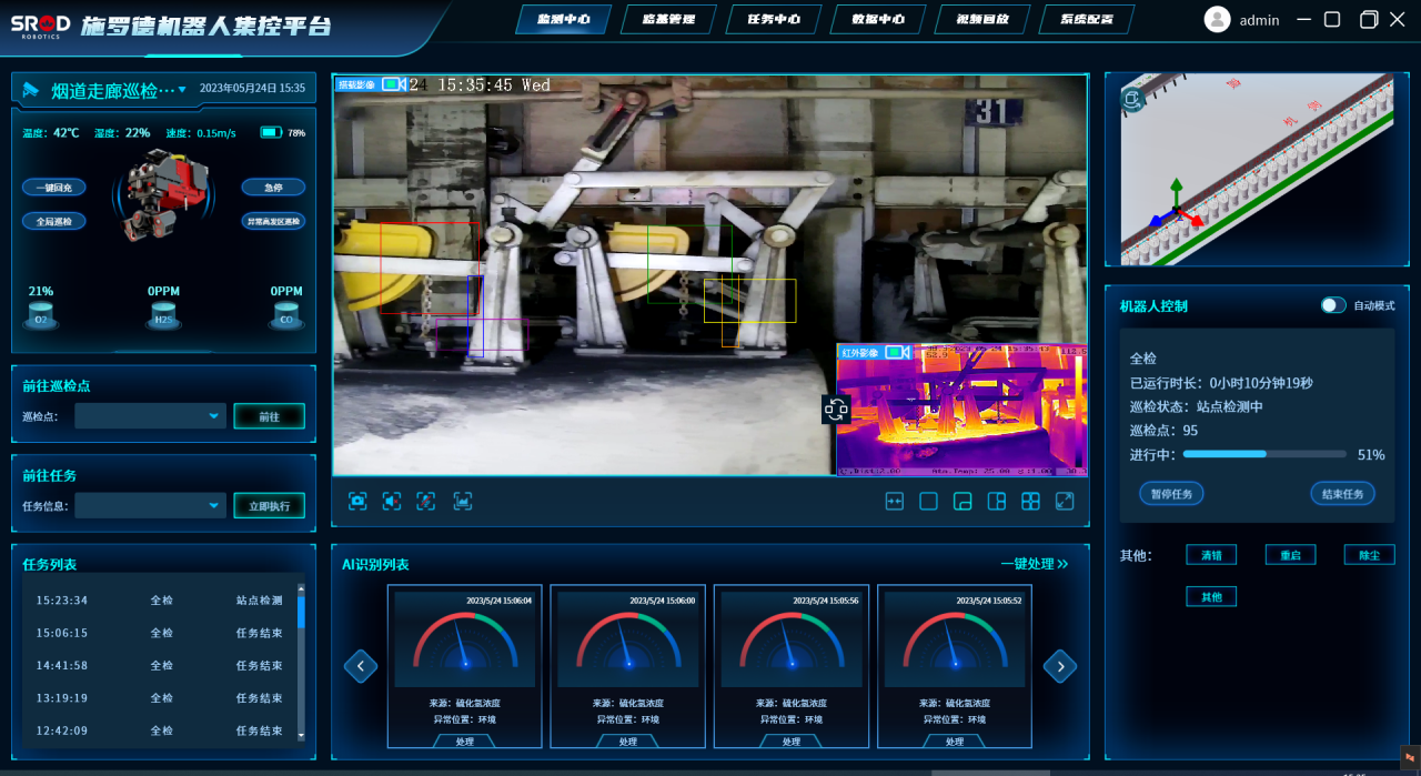该系统依托大数据和人工智能技术,借助防爆机器人、高清摄像单元以及多重传感器,构建起集设备运行监测与环境监测为一体的智能巡检系统。