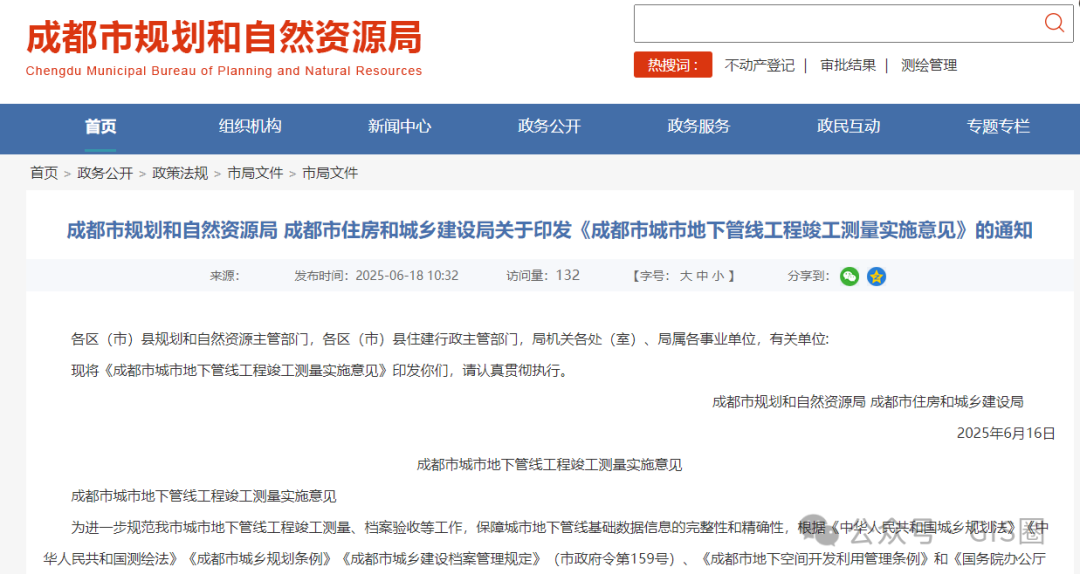 成都市规划和自然资源局 成都市住房和城乡建设局关于印发《成都市城市地下管线工程竣工测量实施意见》的通知