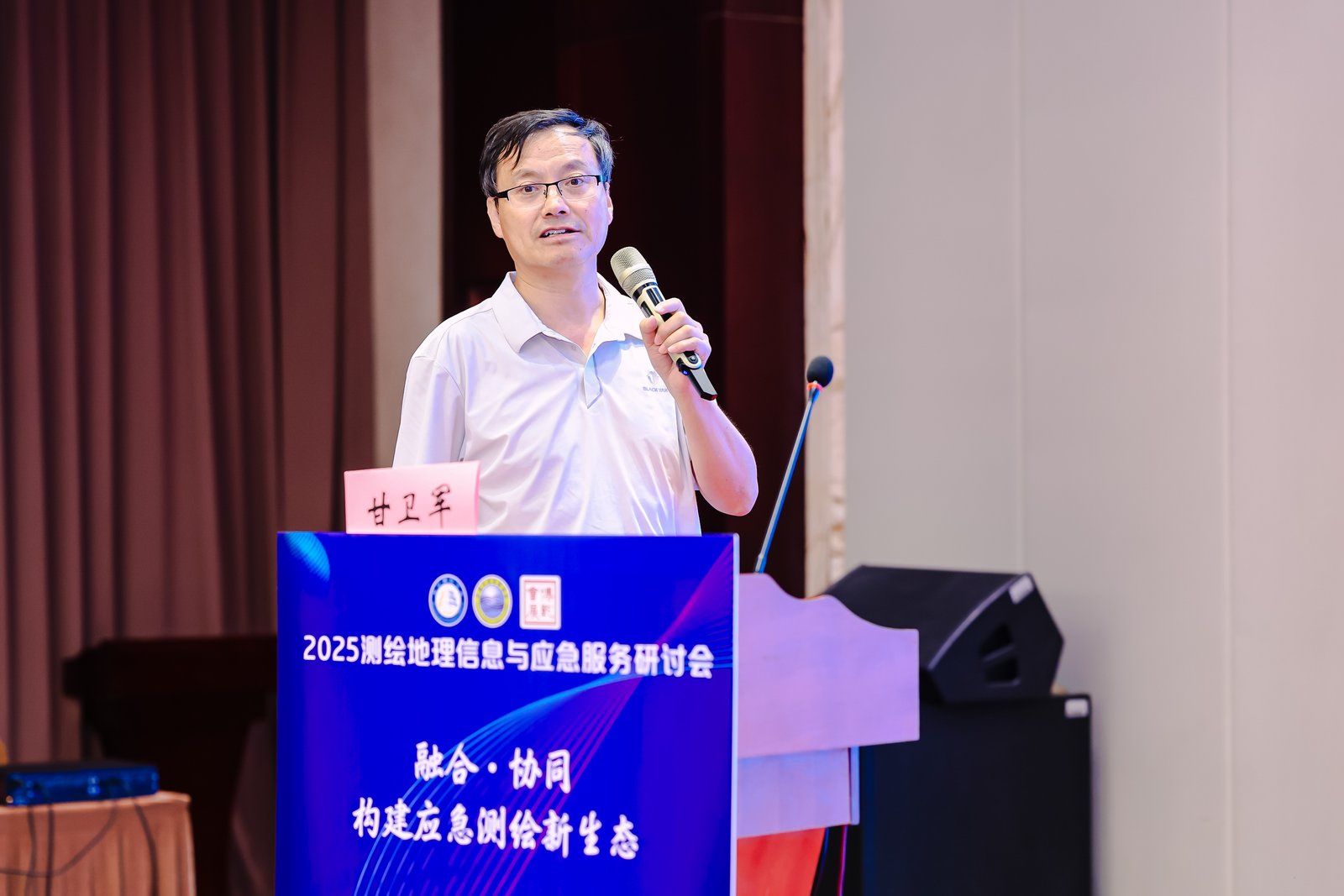 中国地震局地质研究所地壳形变研究中心主任甘卫军做《我国地震行业 GNSS 观测网建设及其在应急测绘中的应用》的主题报告。