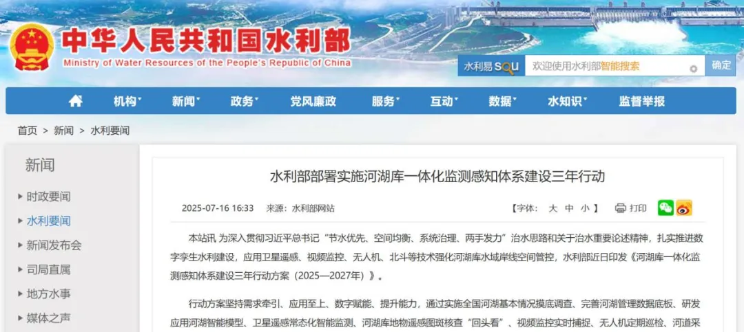 近日,水利部印发《河湖库一体化监测感知体系建设三年行动方案(2025—2027年)》,要求构建贯通前端感知、平台归集、信息应用全过程的河湖库一体化监测感知体系。在这一体系中,将运用大量的现代化监测感知技术装备,包括卫星遥感、视频监控、无人机、无人船、北斗等技术,从而为相关行业催生万亿级市场空间。