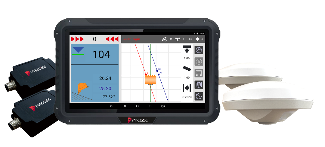 The PRECISE E2 is an excavator-mounted guidance system built on the principles of Precision, Reliability, and Ease. It fuses multi-constellation RTK GNSS with IMU to deliver centimeter-level positioning—±1.5 cm horizontal and ±3 cm vertical—providing real-time feedback on bucket depth, angle, and position. Embedded 4G dual-SIM cellular and adjustable-power UHF radio ensure seamless connectivity both online and offline. Its rugged IP67 design and 10.1″ sunlight-readable touchscreen enable fast setup and reliable operation in all weather conditions.