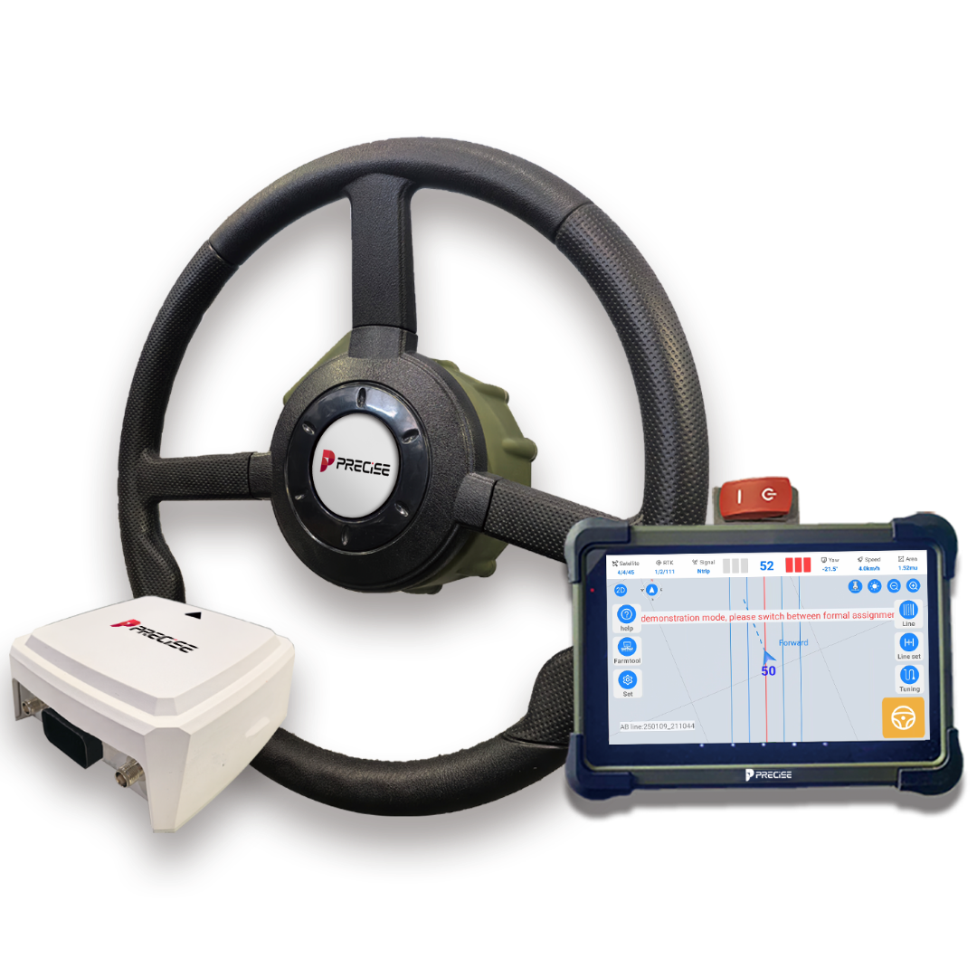 The PRECISE A2 is an autopilot steering system built on the principles of Precision, Reliability, and Ease. Delivering centimeter-level operational accuracy of 2.5 cm, it features a plug-and-play design with deployment in under 20 minutes. The electric steering wheel ensures stable control, while the built-in high-brightness touchscreen, IP67-rated protection, and dual-network 4G connectivity enable all-weather remote monitoring and diagnostics. Compatible with major agricultural machinery brands, A2 supports multi-constellation RTK navigation—driving intelligent automation in modern farming.