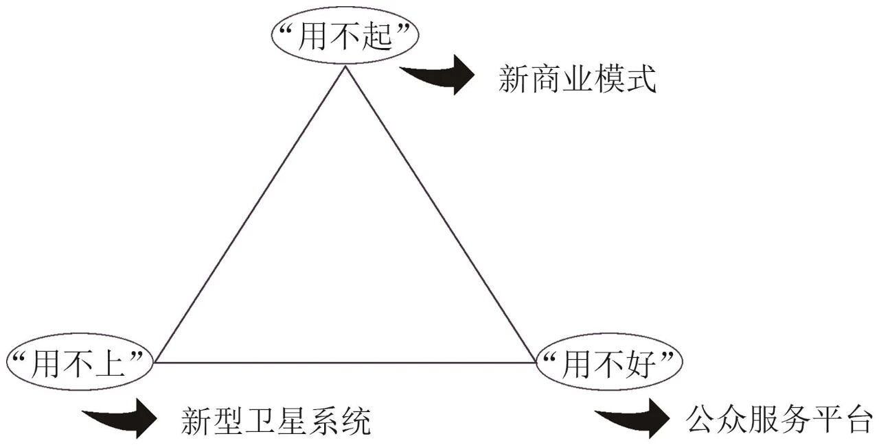 进一步剖析上述问题的根源所在。“用不上”(即时性不够)背后是两大核心问题——一是卫星数量不够,不能形成时空连续监测;二是传统的“卫星过境—地面站接收”数据传输方式制约了即时服务能力。“用不好”背后是产业链缺乏有效整合,没有形成一个链接各方数据资源和技术能力的第三方平,也就不能面向用户提供一站式的综合解决方案。“用不起”背后则是商业化模式设计不合理,未能形成“用户多—单价低—用户更多”的正向循环。