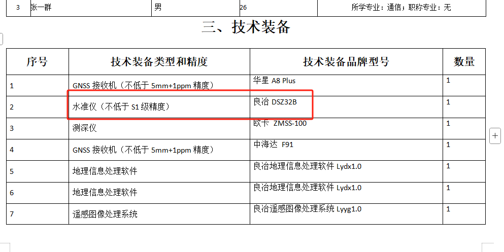 仪器设备:申报所需测绘设备须为实物,并接受现场核查,其中 GNSS 设备须为单北斗系统,水准仪精度需达到 S1 级;