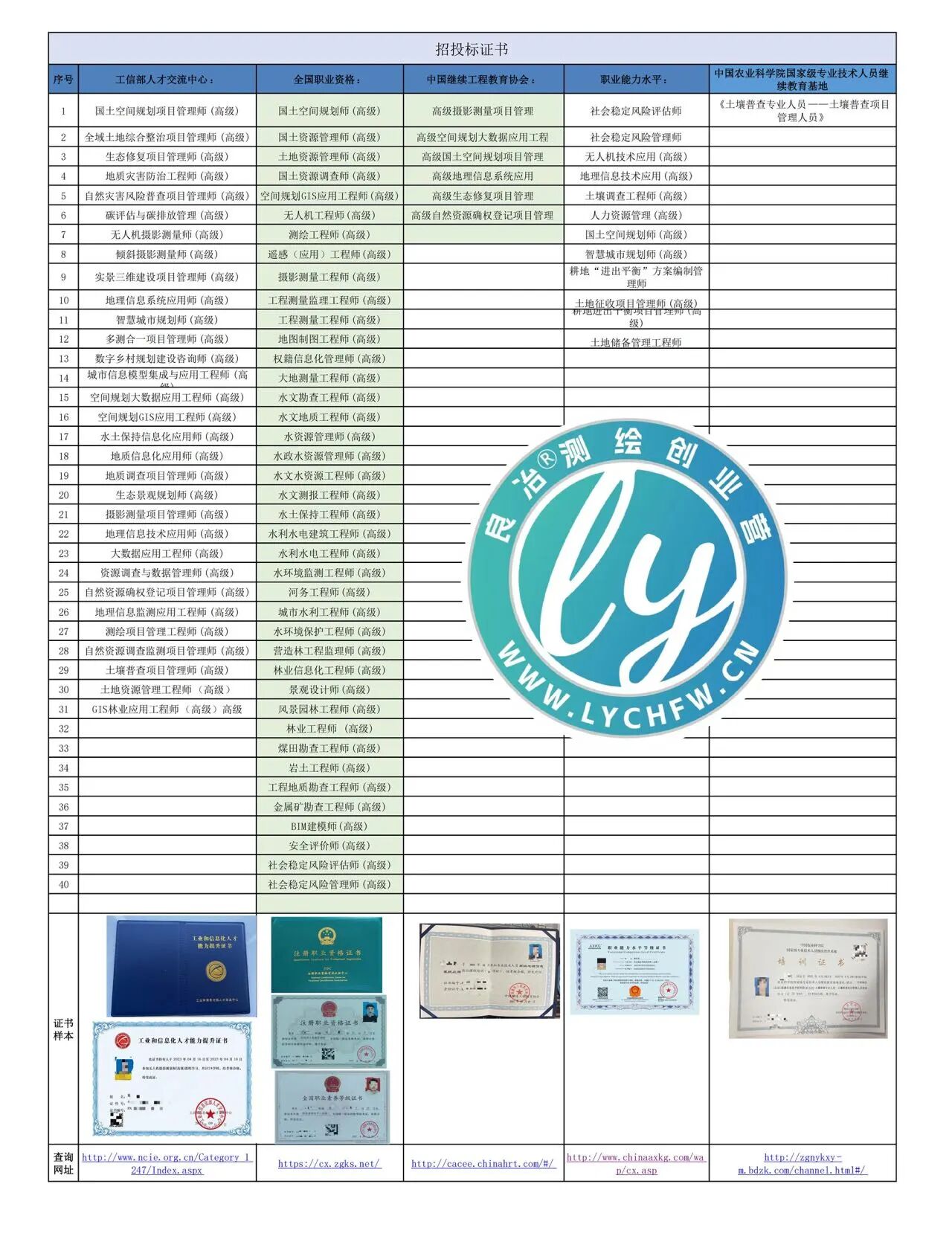 • 其他资质:全国林业资质/城市规划资质/评估资质