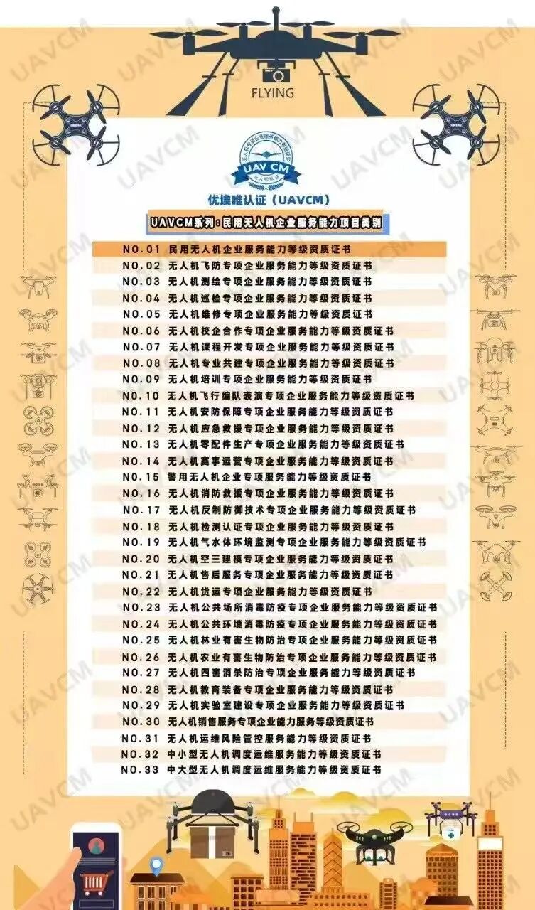 • 无人机专项服务能力甲级/无人机运营合格证/CAAC培训机构合格证/AOPA培训证书/CAAC无人机执照