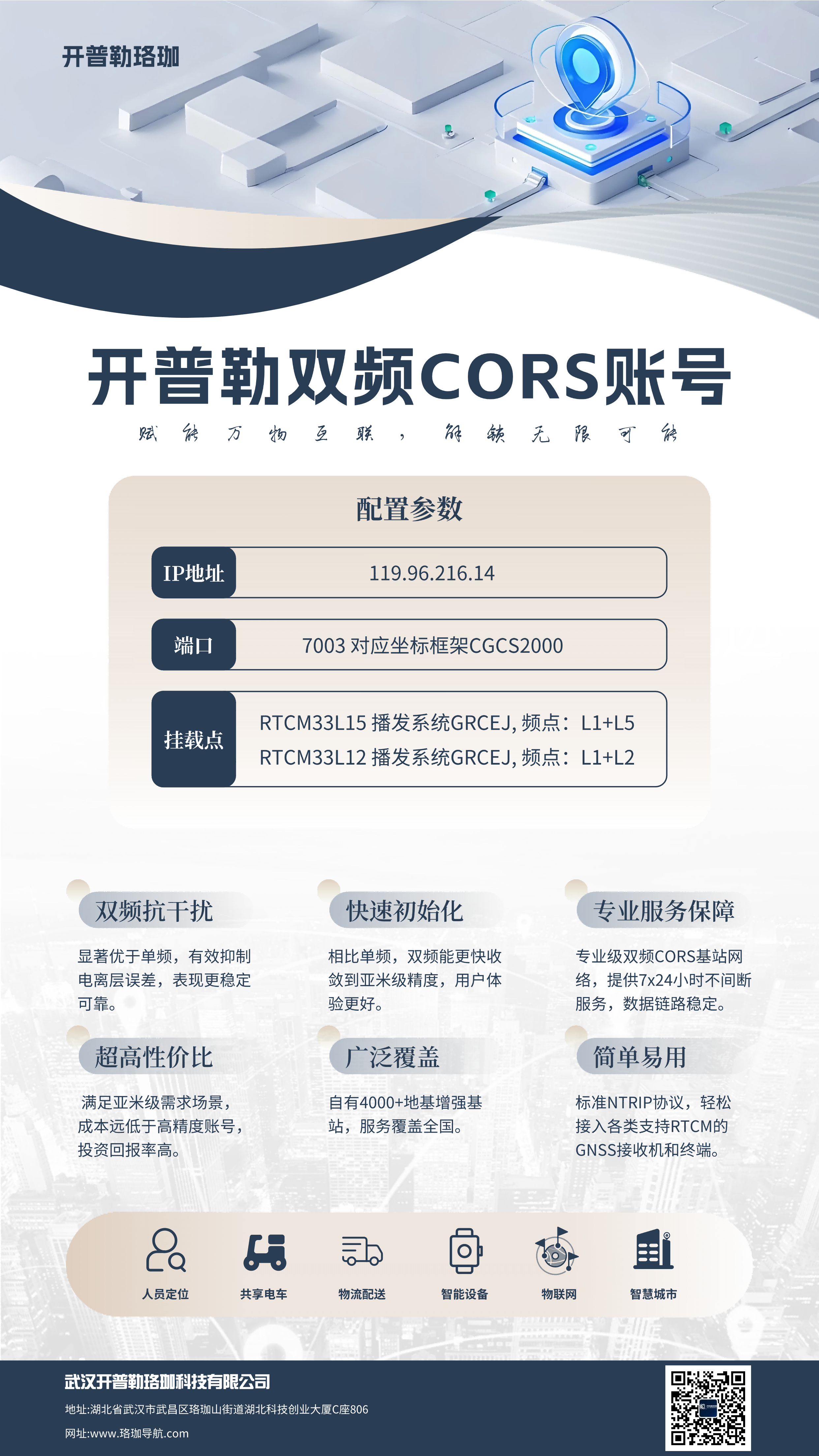 开普勒亚米级高精度定位服务是一款基于双频RTK(载波相位差分)技术,通过互联网提供7×24小时高可用的高精度定位服务产品,稳定覆盖全国绝大多数区域(除西部无人区外)。该服务可为海量用户提供实时、可靠的亚米级位置信息,广泛适用于人员定位、共享单车、物流追踪等多种高精度定位应用场景。