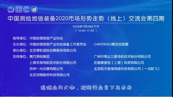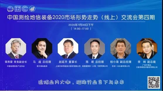 2020年7月30日下午,以“追随业内大咖,把脉行业当下与未来”为主题的中国测绘地信装备2020市场形势走势(线上)交流会第四期圆满结束!