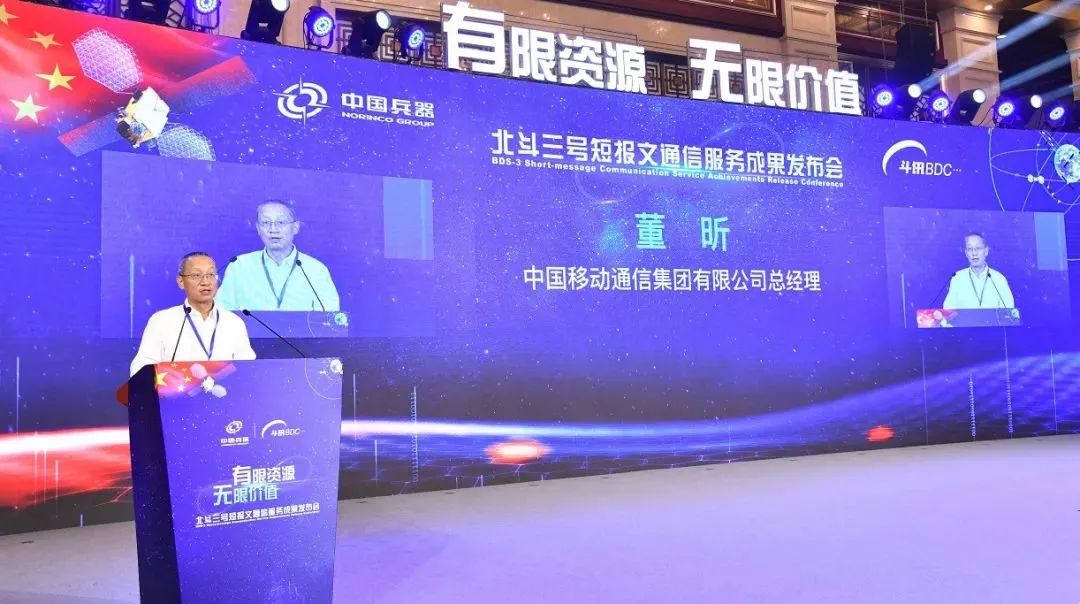 董昕总经理在致辞中表示,本次“北斗三号短报文通信服务成果”的发布,既是各方贯彻落实北斗产业化国家战略,推动北斗系统服务国家、服务人民的重要举措,也是构建北斗应用产业新业态、实现北斗短报文通信服务由行业应用迈向大众应用的重要里程碑。中国移动深入学习贯彻习近平总书记重要讲话重要指示批示精神,主动融入和服务国家战略,扎实履行央企“三个责任”,在上级部门的关心指导下,与兵器工业集团通力合作,与产业各方积极协作,为北斗产业化和规模应用贡献“移动力量”。我们主动融入国家科创体系,促进北斗与5G两大“国之重器”深度融合、相互赋能,打造通导一体、数据安全、电信级保障的时空信息基础服务产品。我们积极探索北斗大众应用,深度参与北斗三号短报文通信服务平台建设,推动北斗应用“飞入寻常百姓家”。我们大力培育北斗应用生态,联合多家产业龙头,探索短报文和地面移动通信的双网融合通信服务,为北斗的产业化应用、市场化推广夯实了基础。作为北斗卫星导航系统的特色功能,短报文通信服务在应急通信、紧急救援、防灾减灾等事关国计民生的重要领域,在水文水利、海洋渔业、石油石化等影响生产生活的重点行业,发展前景广阔,市场潜力巨大。中国移动愿与产业伙伴一道,全力推动“5G+北斗”融合创新、应用拓展与生态建设,探索公益与市场相结合的运营模式,推动短报文通信服务更好融入百业、服务大众,加快北斗应用的规范化、标准化、规模化和国际化拓展,为北斗系统更好服务全球、造福人类贡献智慧和力量!