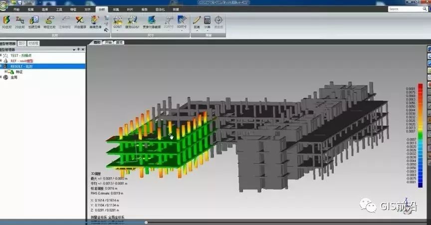 BIM模型可以指导施工,三维扫描模型可以描述真实情况,将两者进行对比,不仅可以发现施工偏差,还可以检测施工质量。