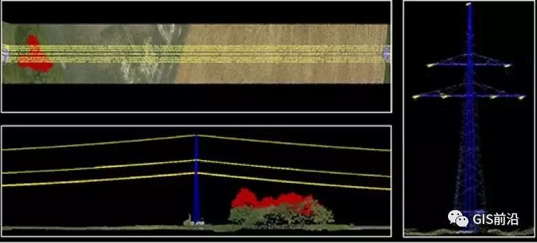 利用无人机激光雷达系统获取的高精度点云可以检测建筑物、植被、交叉跨越等对线路的距离是否符合运行规范,线间距是否满足安全运行的要求;同时相机获取的高清晰度的影像,可以让巡检人员在室内进行线路设施设备和通道异常的判别。根据分类得到的电力线、植被和地面等分类的点云,可以计算出靠近电力线的植被并标记出来,可以起到预警的效果。