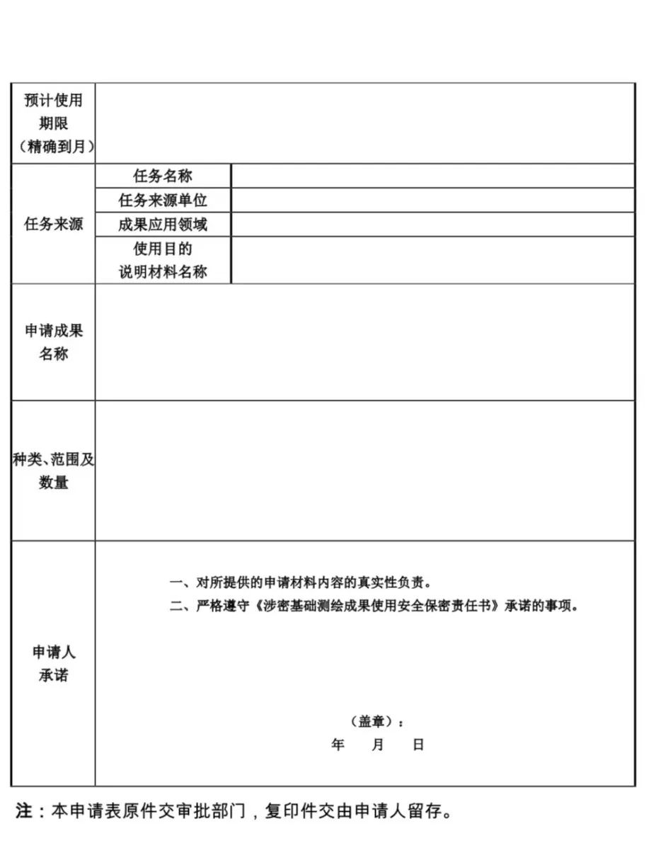 (一)《涉密基础测绘成果提供使用申请表》(见附件1);