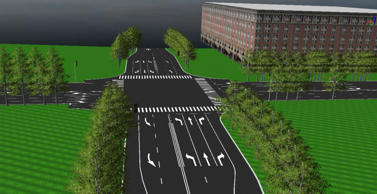 基于路网数据,软件还能自动构建三维模型,从道路表面、标识符号,到行道树、路侧建筑,全都能还原。而且功能超贴心: