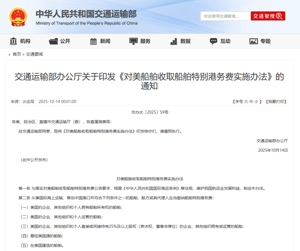 近日,印度阿达尼集团发布紧急禁令,禁止遭美欧英制裁船舶停靠其港口。与此同时,10月14日凌晨,美国贸易代表办公室针对中国海事、物流和造船业的301调查制裁措施正式生效,中方迅速回击,交通运输部印发《对美船舶收取船舶特别港务费实施办法》。中美港口博弈持续升级。