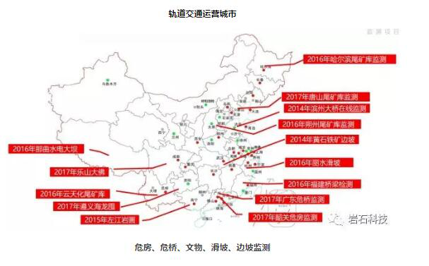 随着国家基础建设进入建设与养护现状,各项基础设施的安全问题受到了政府的高度重视,危房、桥梁、滑坡、大坝、高速公路隧道(含在建高速隧道)、文物、轨道交通(轻轨、高铁、普铁、地铁)等安全监测需求持续增长。2017年岩石科技武汉技术中心业务持续发力,完成了多领域多项专项监测,受到业主单位及上级领导的好评。