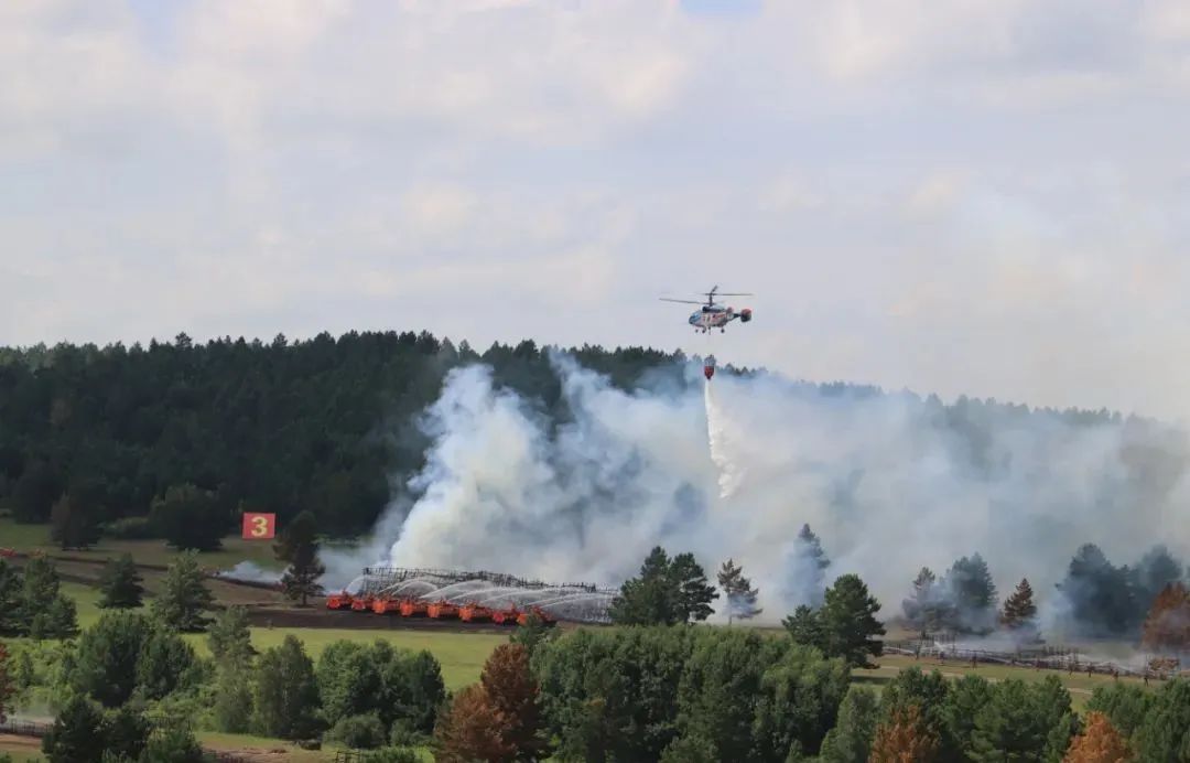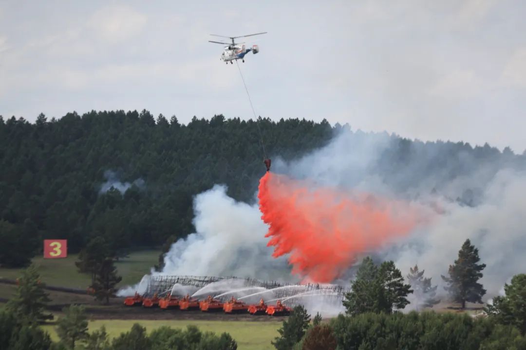 与会代表来到呼伦贝尔市锡尼河林场演习场,现场观摩灭火装备展示和灭火联合演习。装备展示以“防、训、指、战、保”的总体灭火作战需要,划分前进指挥所运行、灭火主战装备、通信装备和车辆装备等模块,集中体现了中国模式森林草原灭火装备建设发展水平。演习以内蒙古东部重点林区发生重大森林草原火灾为背景,立足实兵、实装、实战,从难从严设置多种林火类型的真实火线,区分启动应急响应、组织力量投送、展开灭火行动、开展联合保障四个阶段,重点演示运用常规灭火、风水化灭火、机械化立体灭火等多种扑救手段。来自森林消防、消防救援、地方专业扑火队和驻地林航部门共700人、10架直升机、1600余件(套)装备参加演习。此次演习立足“全灾种、大应急”理念,着眼“联勤联动”深度融合,以练为战,以战促训,对参演队伍的联合指挥、力量投送、协同行动、综合保障等多方面进行综合检验。整个演习导调紧张有序,队员士气高昂,战法体现明显,队地配合密切,场面精彩震撼,获得与会代表的充分肯定和高度赞誉,取得了圆满成功。