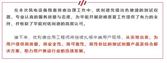面对高温“烤”验,优利德不服“暑”!与烈日共处、与高温作伴,更以一系列便捷高效的测试仪器,为华能风电设备平稳度夏助力护航。