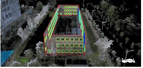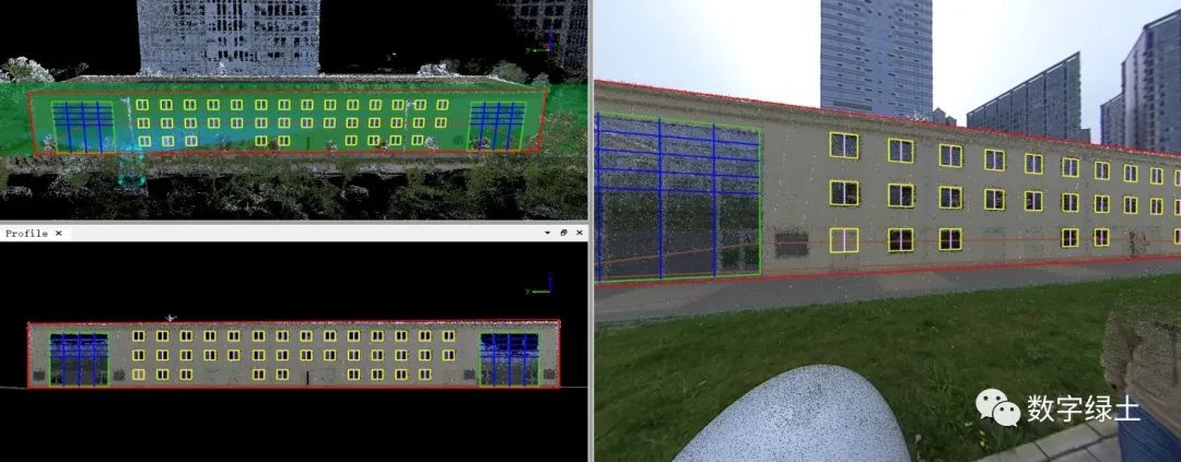 城镇建筑由于建设年代不同,建筑“颜值”参差不齐,对低“颜值”的建筑立面进行改造有利于城镇景观协调,提示城市形象。改造或者扩建要求作业人员在短时间内高质量的完成建筑立面图纸绘制工作,实现建筑物的数字化和可视化。激光雷达具有快速、无接触、实时性强、精度高、主动性强、全数字特征等特点,可以快速、大量地采集建筑物立面信息,为快速测制建筑物的立面图提供了一种全新的技术手段。