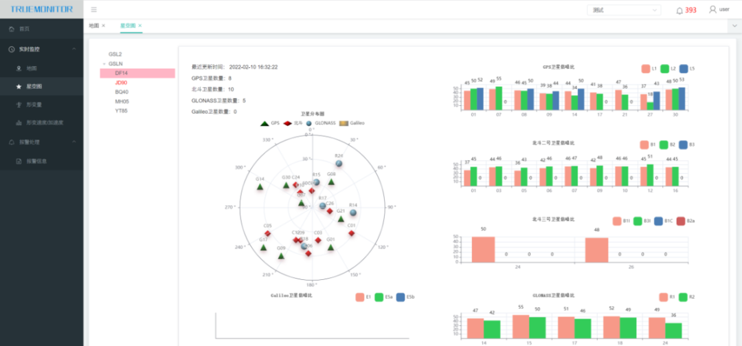 控制中心服务器GNSS数据处理软件True Monitor+实时差分解算出各监测点三维坐标