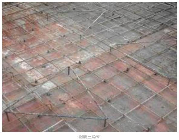 用直径10mm钢筋焊制成型,边长为500mm的钢筋三角架,架高即为板厚。