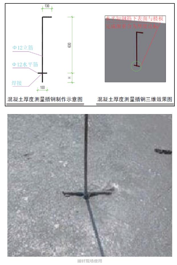 自制钢筋插钎,采用12mm钢筋焊接成型。根据不同楼板厚度制定专用的钢筋插钎。