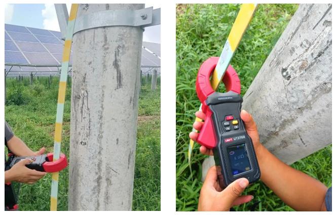 通过UT256 60A交直流叉型表可快速测量每组光伏面板的电流,判断每组输出电流是否正常。