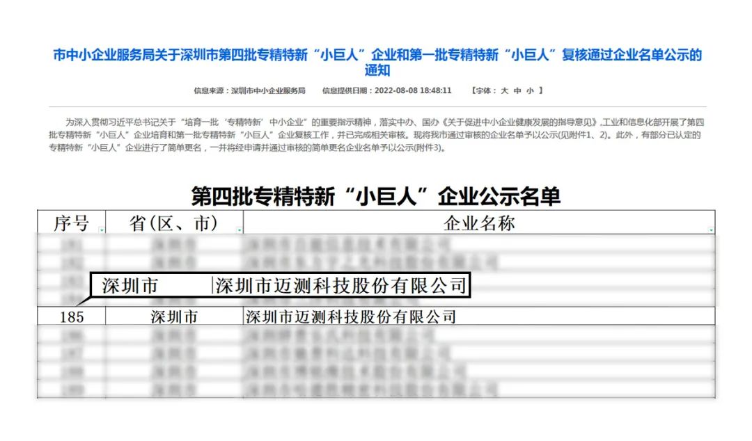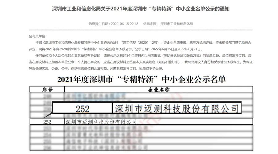 继2022年6月荣获深圳市“专精特新”企业认定之后,迈测科技又通过层层审核,进一步获得国家级专精特新“小巨人”的认定!
