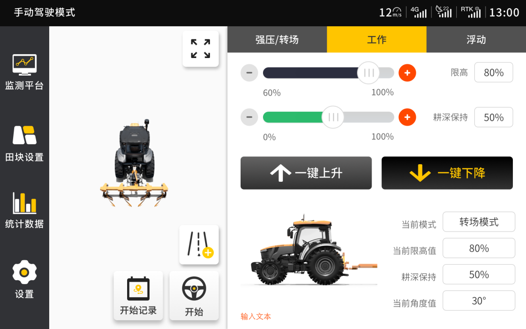 机具耕深、离地高度实时掌控
